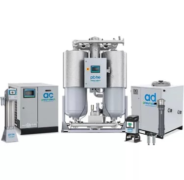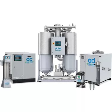 Refrigerated Air Dryers, Desiccant Air Dryers, Filtration, Oil / Water Separator Systems, and Drains